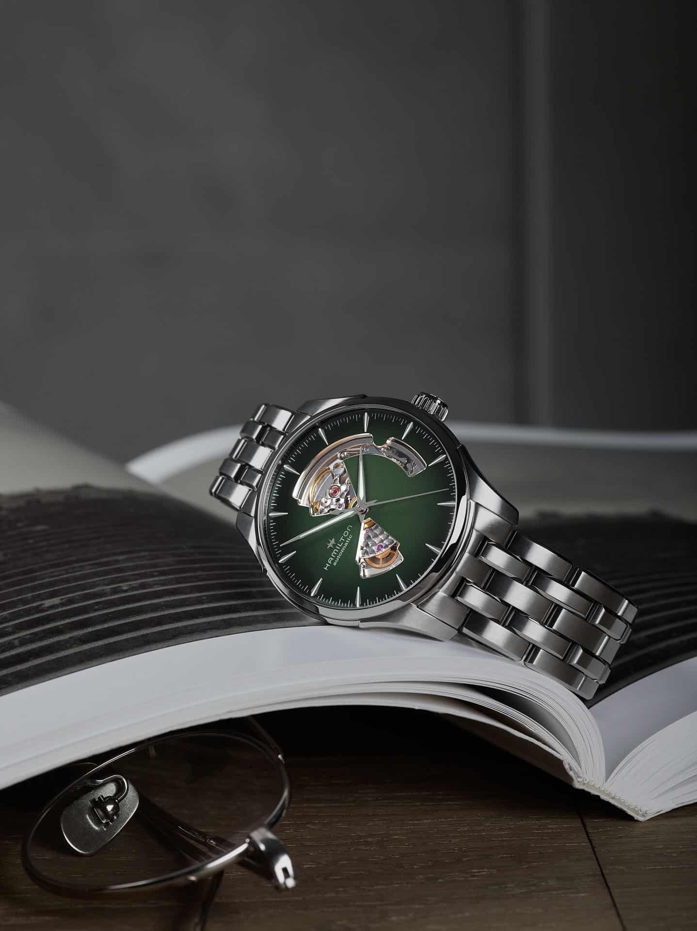 El Jazzmaster Open Heart de Hamilton, es el balance perfecto entre tradición e innovación. Es un reloj que ha cautivado porque revela parte del misterio que ocurre en su interior mostrando su mecanismo automático suizo en acción.