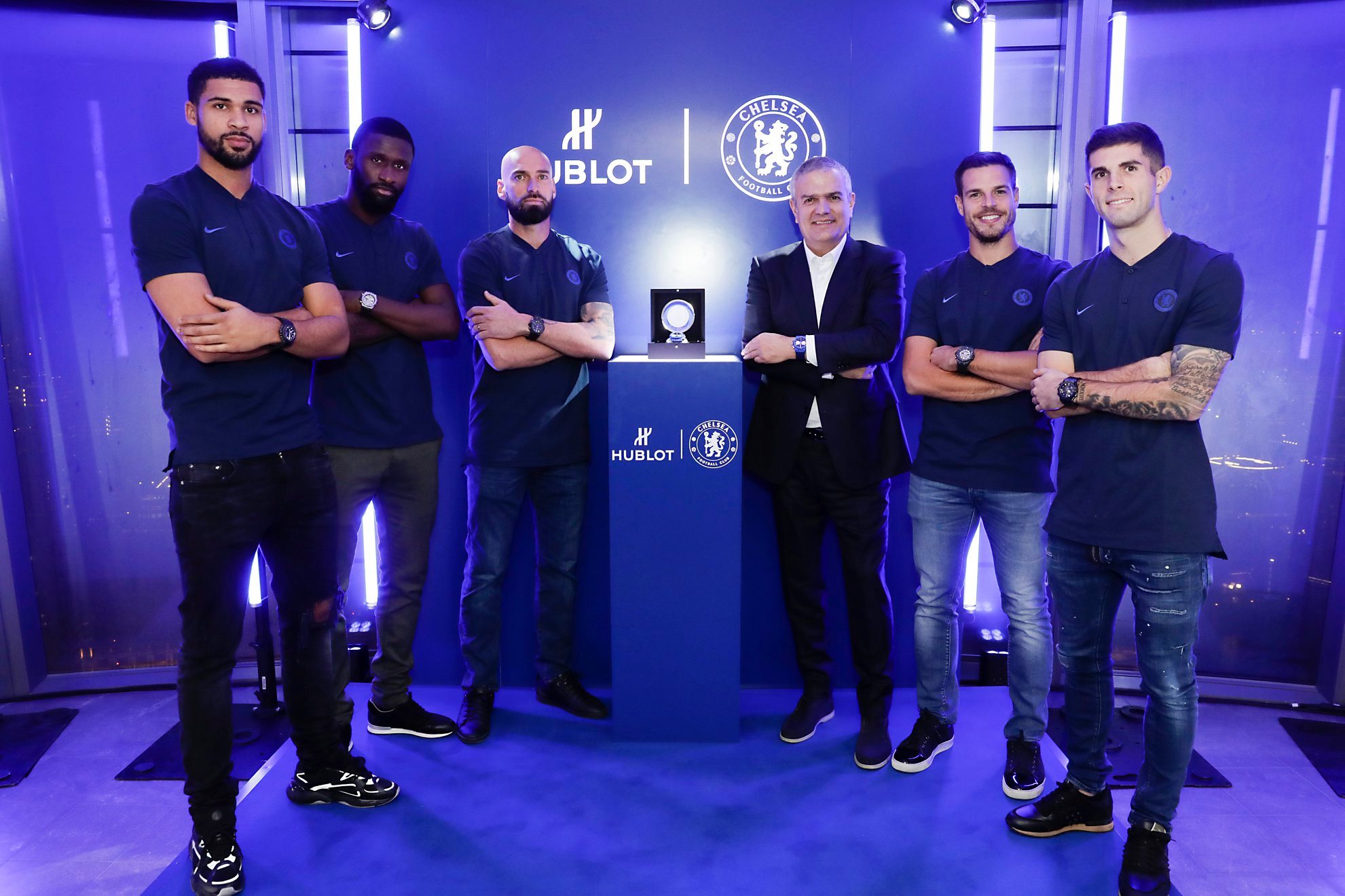 Hublot y Chelsea FC celebran su asociación de larga duración con el lanzamiento del nuevo reloj Classic Fusion Chronograph Chelsea FC en L.E. sobre el skyline de Londres.