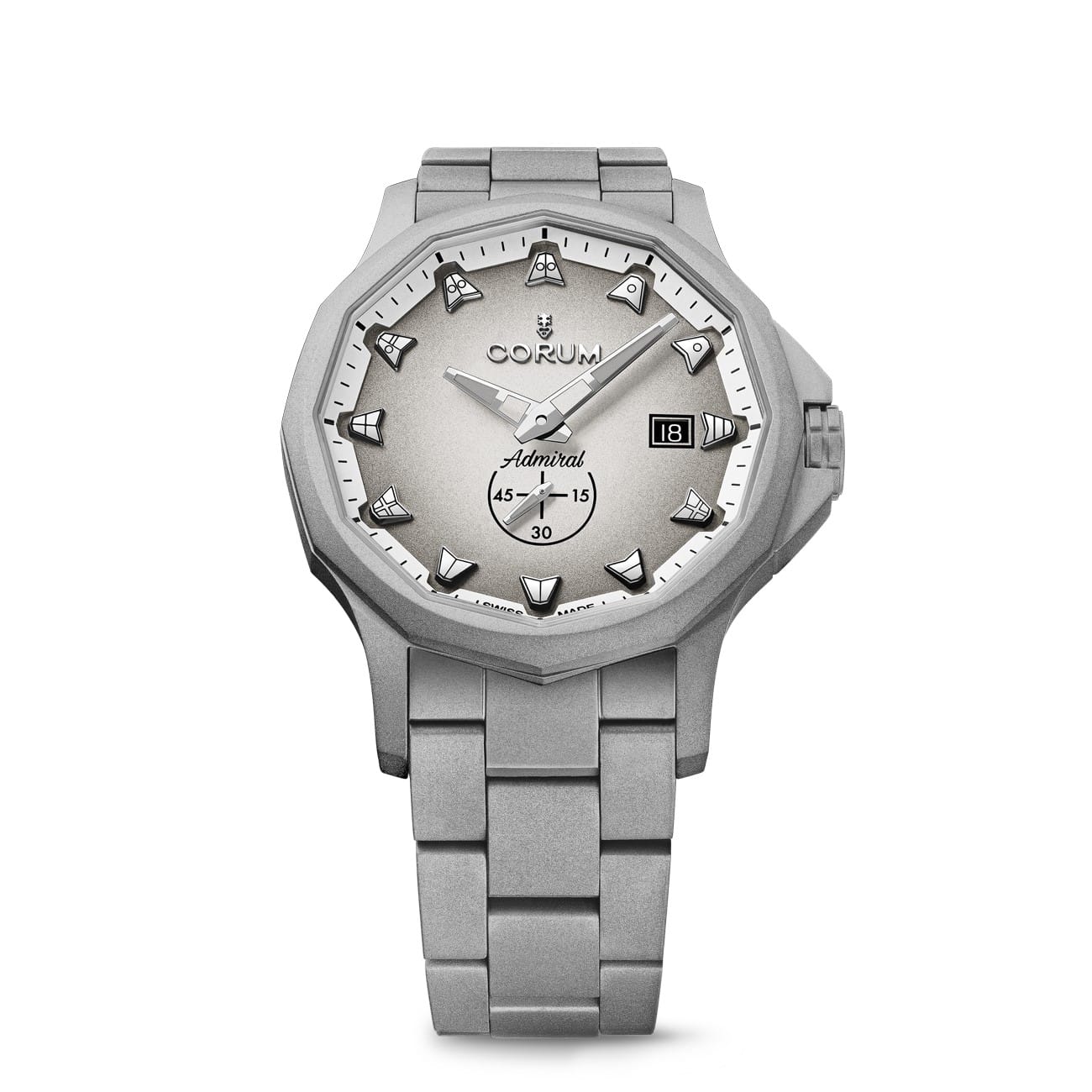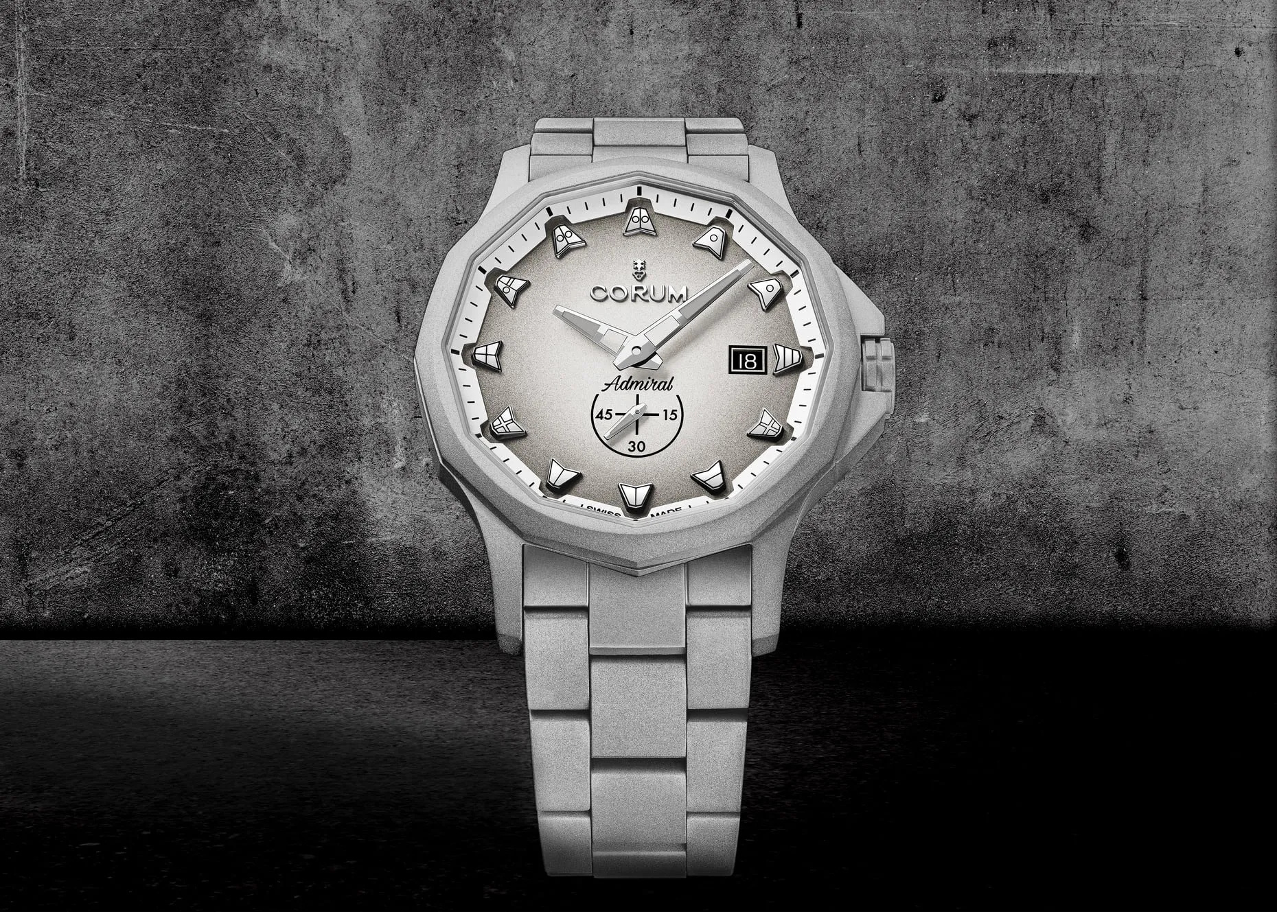 Corum Admiral 42 Full Grey Monochrome forma parte de la oferta de novedades de la marca este 2021. La versión Full Grey Monochrome, elaborada en acero inoxidable pulido con chorro de arena, con una carátula gris degradada y gallardetes náuticos en gris, ofrece un atractivo extraordinario.