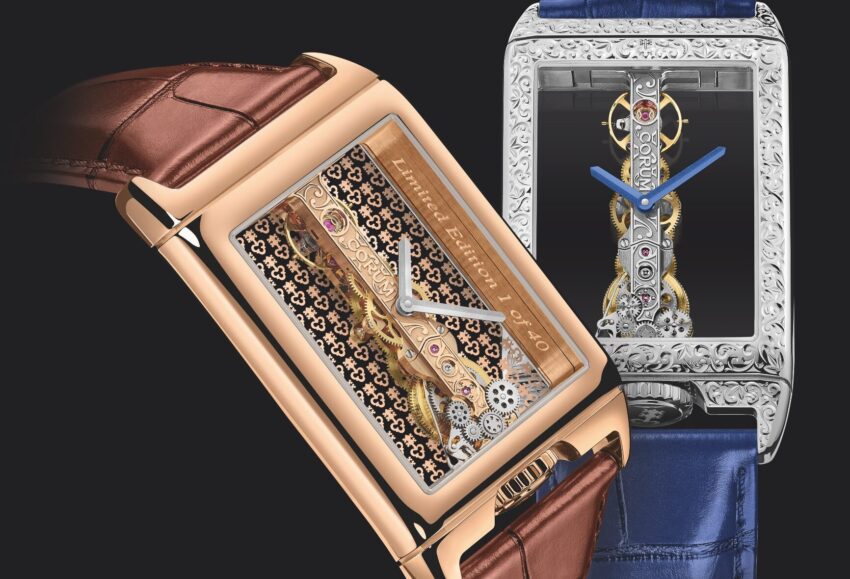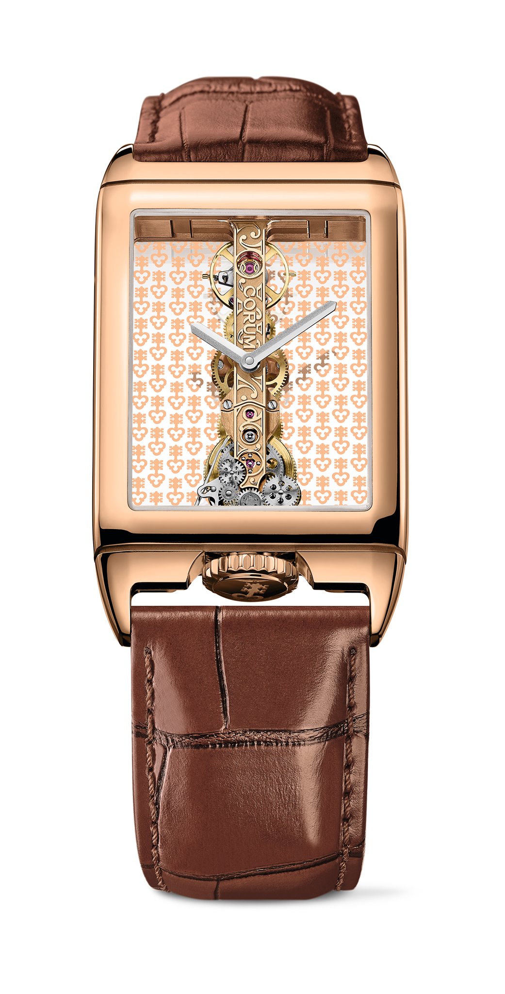 Nos inspiramos en el período Art Deco, “que formó la base de algunas de las primeras piezas diseñadas por el Sr. Bannwart. Al incluir nuestro emblema icónico de Corum Key en el fondo de la caja de zafiro para la versión Rose Gold, y el grabado a mano en toda la caja del White Gold, estos no son solo para los aniversarios de Corum y el Golden Bridge, sino también un tributo. a la historia artesanal de la relojería en La Chaux-de-Fonds “. Boon Chong Soon (Director de marketing y ventas de Corum),