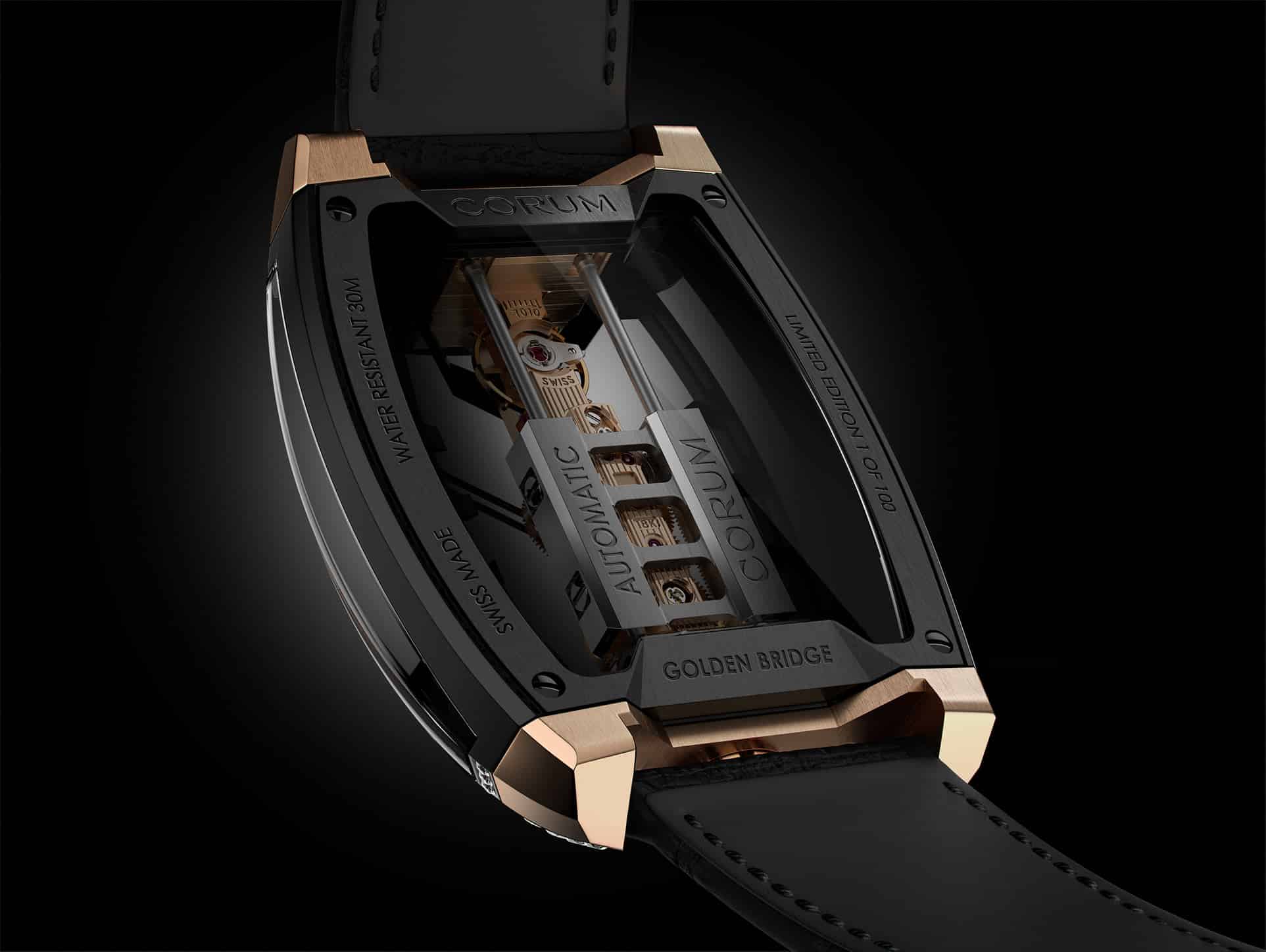 La complicación no sólo reside en el sistema de carga, que no puede oscilar de forma tradicional, sino también en la visibilidad del calibre y en la eficiencia del armado. Cuando Corum optó por crear una versión automática, recurrió a su sólido equipo de investigación y diseño para desarrollar este complejo calibre. La creación tardó más de cuatro años en realizarse, ya que la marca persiguió incansablemente una forma de mostrar un movimiento lineal flotante con un peso oscilante sobre rieles. El Corum Golden Bridge Automatic, presentado en 2011, marcó el comienzo de una nueva era para este ícono contemporáneo.