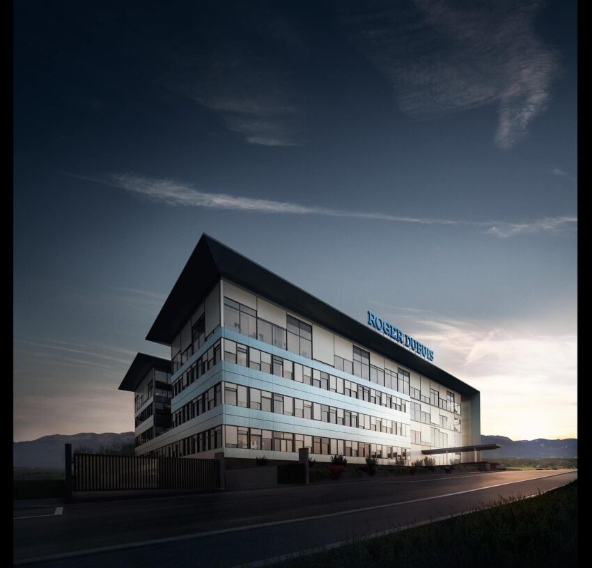 La manufactura de relojes suizos Roger Dubuis se rige por una mentalidad audaz que impulsa la innovación mientras cultiva un profundo respeto por las tradiciones. Desde su fundación en 1995, la Maison ha superado constantemente los límites técnicos y ha demostrado un compromiso inquebrantable de ir con valentía a donde ningún otro relojero ha llegado antes. El edificio fue inaugurado en 2001, con paredes de vidrio refleja los relojes realizados en su interior: un exterior audaz y seguro que alberga mecanismos complejos y sofisticados.