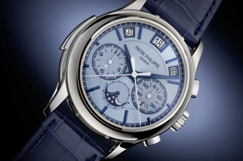 Si tres de las funciones se consideran en sí mismo grandes complicaciones, Patek Philippe suma cuatro en una pieza que destaca por su aspecto deportivo y un diseño de máxima legibilidad. El mayor reto del nuevo calibre de cuerda automática ha consistido en la implementación del módulo del cronógrafo ratrapante, gran consumidor de energía, en el movimiento base para evitar que el volumen del mecanismo cobrara una dimensión desmedida.