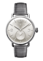 caja de 41 mm de Argentium® (aleación que retarda la oxidación del metal y brinda una coloración única), cristal de zafiro abombado, índices aplicados y finamente pulidos sobre una carátula plateada, opalina coloración rutenio, segundero a las 6 h, números arábigos y, todo ello coronado con el prestigio de Swiss Made y abrazado a la muñeca mediante un “cinturón” de piel de aligátor en diferentes tonalidades: gris, y azul, blanco, rojo y naranja ideales para el verano. Finalmente, al dar vuelta a la pieza podremos admirarnos con su fondo sólido del mismo metal trabajado con un patrón guilloché “Barleycorn”, por si todo lo anterior no lo hubiese conquistado…