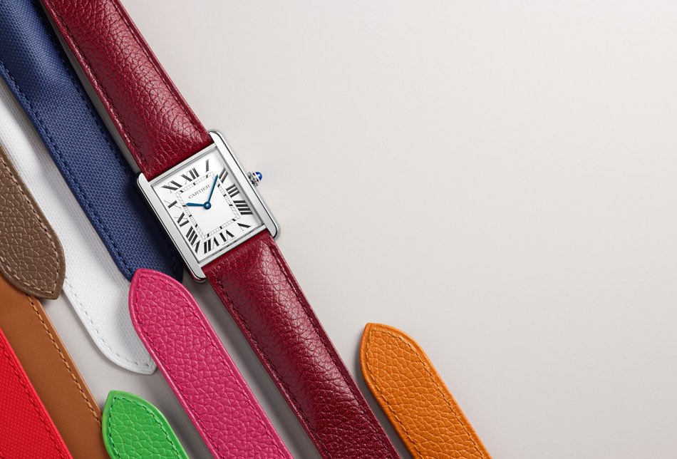 Tan tradicional como una caja Tank, o a partir de la clásica línea Ronde, Cartier ha decidido enfocar su creatividad a las correas, a sus materiales, texturas y colores. En esta ocasión Tank recibe una selección de straps intercambiables que juegan con tonalidades vivas y señoriales, además de utilizar textiles o piel de becerro para abrazar la precisión de su reloj a toda hora.