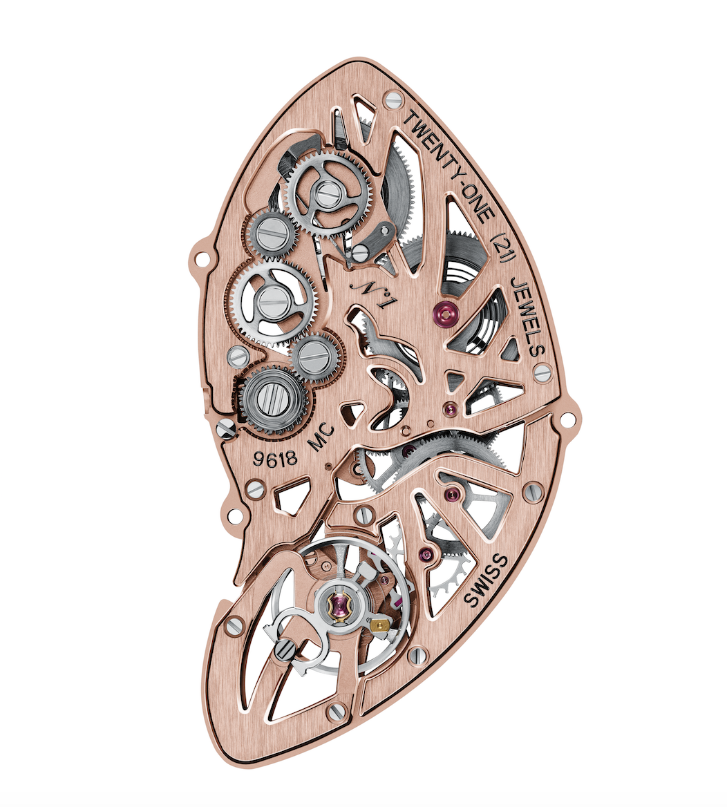 Crash Esqueleto forma parte de los relojes más exclusivos de la Casa relojera gracias a su calibre –de oro– esqueletizado y a su particular diseño. La pieza se caracteriza por evidenciar el paso del tiempo gracias a que el calado del calibre forma números romanos, que se extienden hacia los bordes de una caja curveada de oro rosa de 18 quilates.