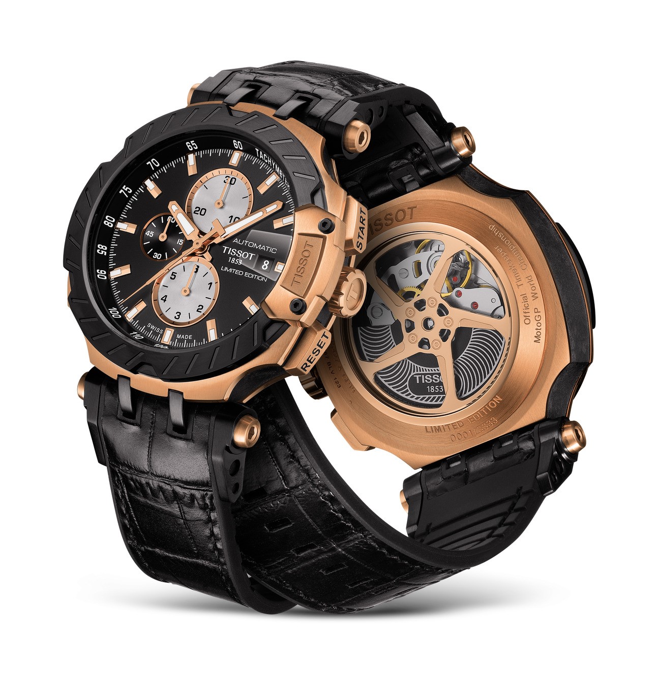 La máxima categoría del motociclismo cuenta con una colección dedicada a rendirle homenaje. Se trata del El Tissot T-Race MotoGPTM, que cuenta con un modelo Automático 2019 posee un diseño especial con un anillo negro de fibra de carbono, un material depurado muy resistente que resalta algunas de las piezas resistentes de la moto. Los impresionantes detalles técnicos característicos de Tissot se pueden ver a través del fondo del reloj que, gracias a su aspecto de rueda, permite observar el movimiento con facilidad.