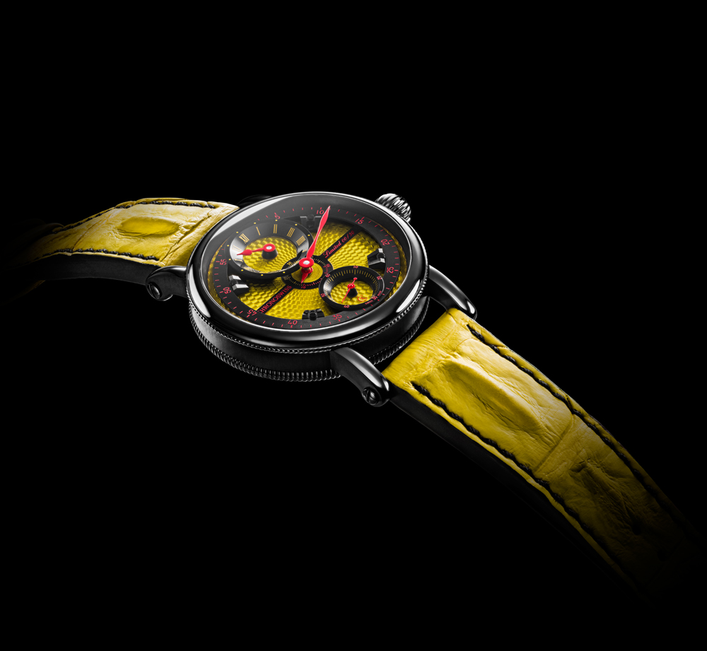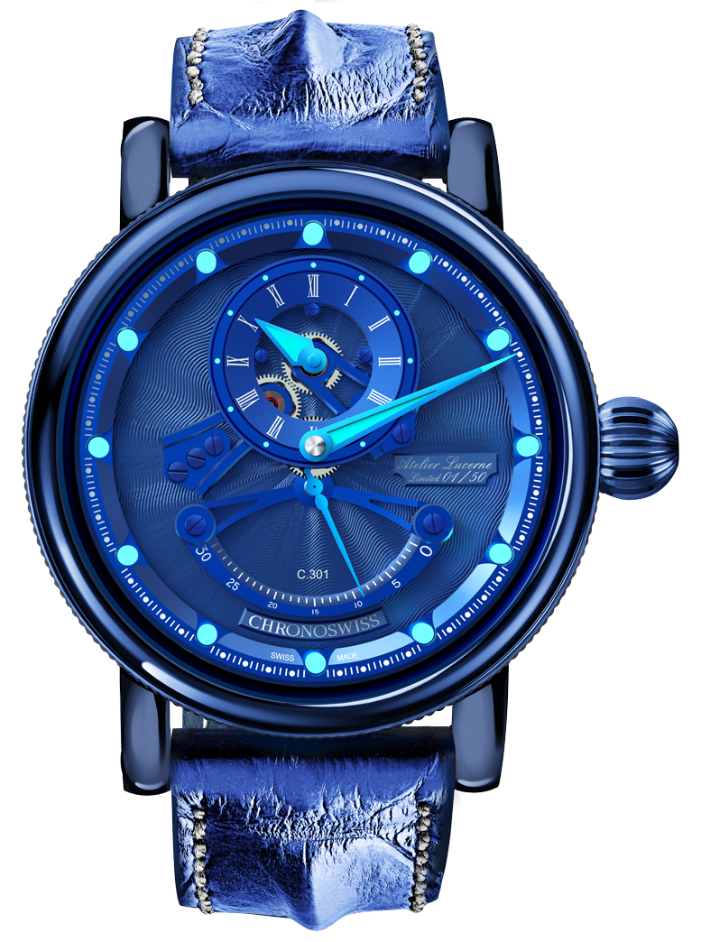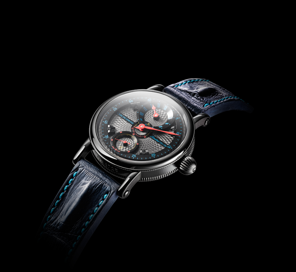 La carátula está desarrollada en dos niveles y destacada con un acabado guilloché distintivo de la marca, mientras que el trabajo de luminiscencia de la pieza ha sido excepcional, incluyendo verdaderos bloques de Super-LumiNova® para los índices. Cada referencia está presentada en Edición Limitada a 50 piezas, y se ofrece en caja de oro rojo, acero inoxidable, acero y DLC negro, además de acero y DLC azul.