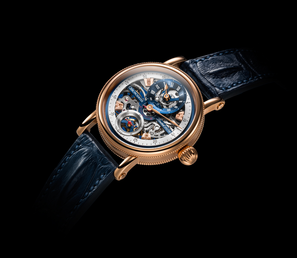 Chronoswiss se concentra en lo esencial para el nuevo Flying Grand Regulator Skeleton: con su carátula apenas existente y un movimiento esqueletizado, el impresionante reloj se libera así de todo material superfluo de una manera innovadora, dando como resultado un reloj Regulador multidimensional con un dial de construcción totalmente elaborada, gracias a los profundos conocimientos de los artesanos de la Maison.
