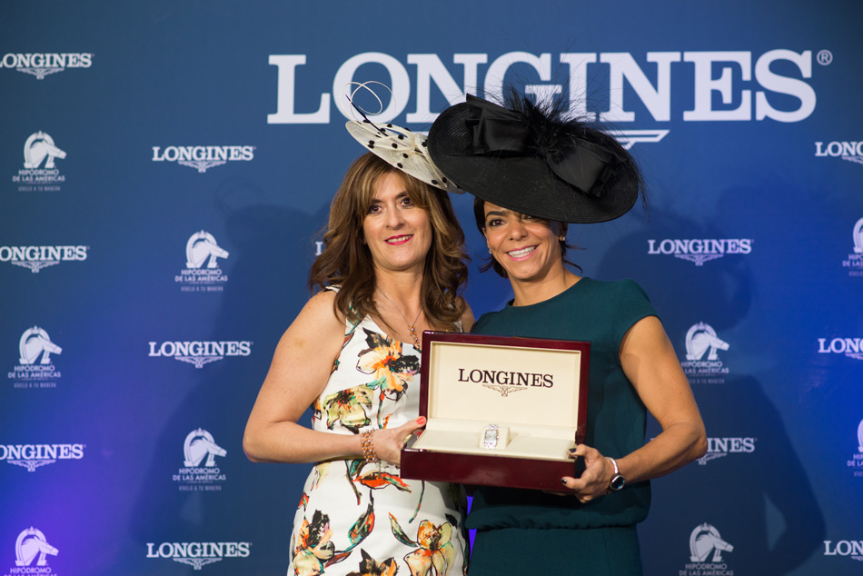 La celebración contó con tres momentos destacados: 1.- Entrega del reloj al actor Andrés Palacios por parte de Edith Chávez Presa, Directora de Longines México; 2.- El concurso de sombreros y la ceremonia de entrega del reloj Longines DolceVita a la mujer más elegante del Handicap, pieza que fue entregada a Fabiola Gómez y a Valentina Meza (madre e hija) que comparten buena actitud y el buen gusto por el vestido, y finalmente la entrega de los relojes Longines Conquest Classic a Jockey, Entrenador y Propietario de Diamante Negro.