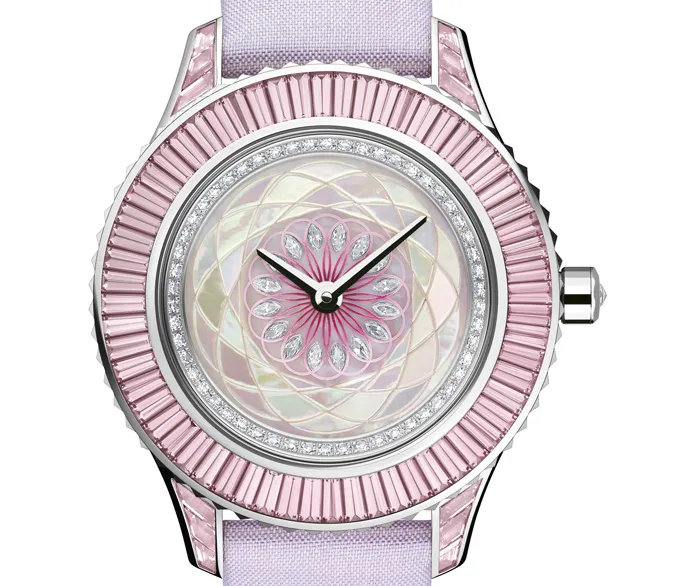 Piezas únicas, así de sencillo… la afortunada poseedora de un ejemplar de la serie conocida como Grand Soir, podrá igualmente presumir de un trabajo excelso en su carátula madreperla; conjunto hermoso finamente creado a partir de la imaginación de los artesanos en comunión con los sueños y savoir-faire de Monsieur Dior.