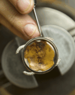 El engaste nieve se confecciona sin establecer un plano predeterminado. Las piedras son seleccionadas y colocadas de una en una; cada garra se talla y cada grano se redondea para dar lugar a un conjunto armonioso y único. En la caja se engastan no menos de 700 piedras preciosas, para lo cual se precisa la maestría de un experto engastador durante cerca de tres semanas.