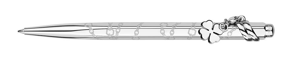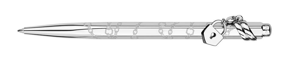 El nuevo y brillante modelo femenino con recubrimiento de paladio, Ecridor Mademoiselle, es extremadamente atractivo. La punta del bolígrafo y el pulsador están redondeados, dando a la pluma una apariencia suave que seguramente atraerá a las escritoras femeninos. En vez de un clip, hay un anillo doble elegante y maravillosamente formado en cuál para colgar el encanto seleccionado. Un motivo de la cadena grabado por láser se entrelaza alrededor de la pluma. Algunos de los eslabones de esta cadena tienen la forma de un hexágono Caran d’Ache – totalmente chic y muy “Mademoiselle”.