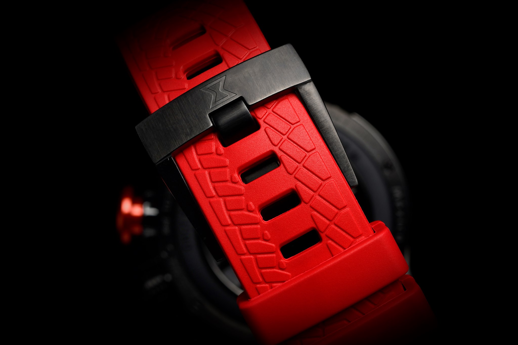 Para ello ha echado mano de detalles sport en su diseño como lo son una carátula de apariencia de fibra de carbono, una correa de caucho vulcanizado con la “huella” de una llanta de competencia impresa y una caja robusta y funcional para la fácil lectura de las indicaciones de la pieza.