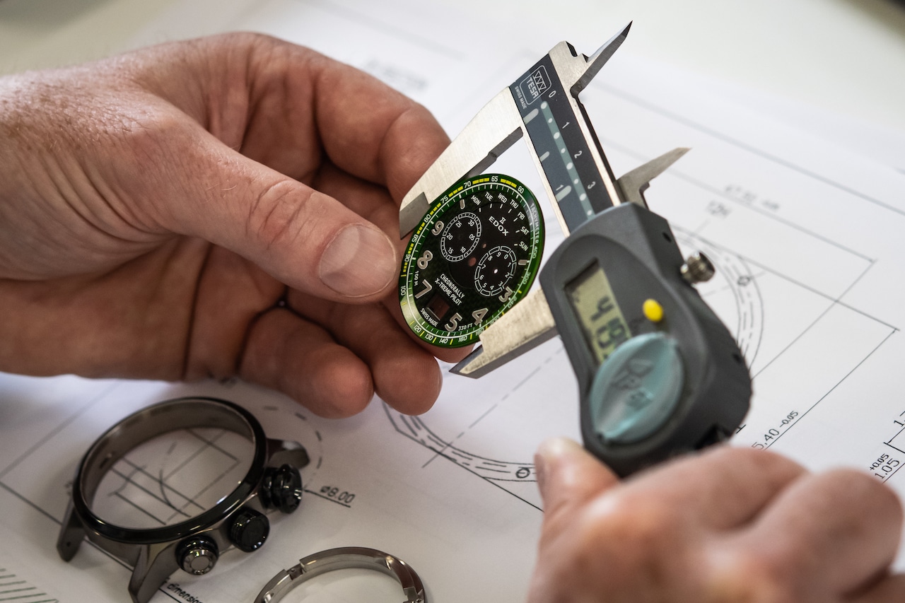 El reloj cuenta con un característico pulsador de inicio y parada de gran tamaño que se convirtió rápidamente en un favorito de la gama de Edox. La versión X-Treme Pilot monta un movimiento de cuarzo suizo para máxima precisión y cristal de zafiro para evitar rayaduras. Además de la función de cronógrafo cuenta con un fechador de doble dígito a las 6. Su caja de 48 mm de PVD y titanio garantizan una resistencia al agua sorprendente de 100 metros. La capacidad es sinónimo de esta pieza, ideal para la alianza entre Edox y BMW M Motorsport.