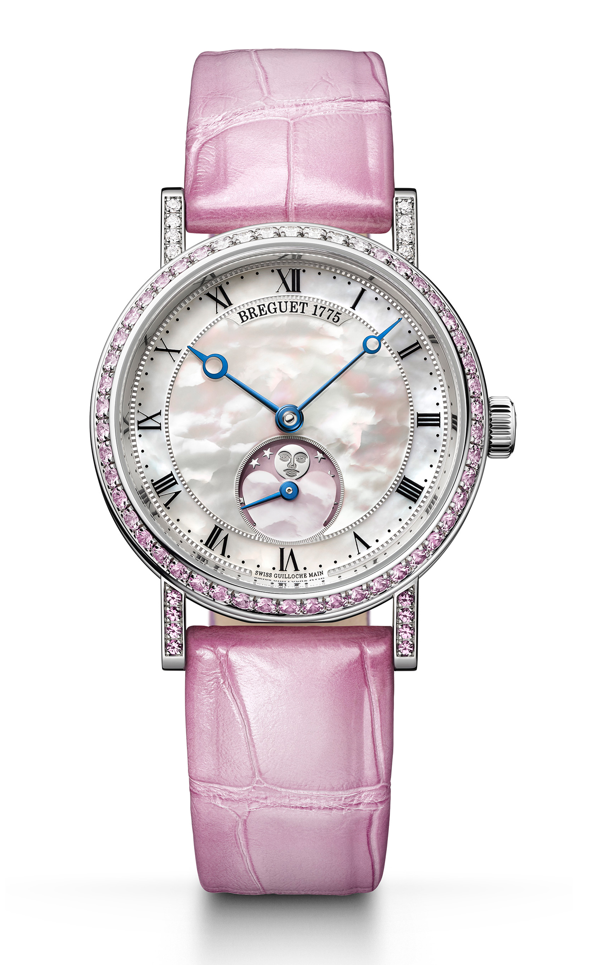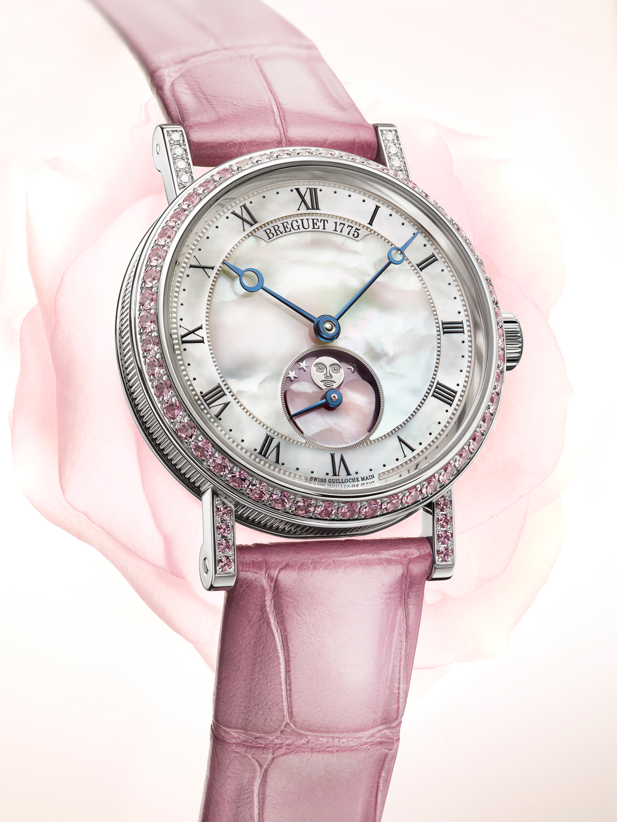 Partiendo desde la esencia, este reloj fue presentado en 2016, su caja es de oro blanco y se extiende hasta los 30 mm de diámetro. Además, luce un engastado de zafiros y diamantes. En el interior vibra el calibre mecánico de remonte automático 537L, que luce decoración Côtes de Genève y un guilloché Grains d´orange en la masa oscilante. En cuanto a la estética general, la carátula está desarrollada en madreperla, las agujas son pomme évidée y la indicación de las fases de la Luna aparece en punto de las 6 horas. Los indicadores son romanos y se abraza al pulso mediante una correa de piel de cocodrilo pulida color rosa. La edición está limitada a 14 ejemplares, en consideración del 14 de febrero.