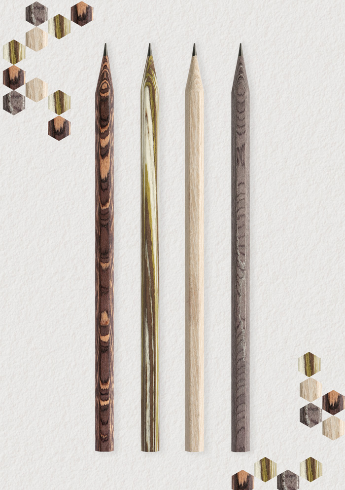 En esta oportunidad, tenemos el privilegio de presentar una colección que surge a partir del corazón de las maderas preciosas, condición que nos obliga a mirar algo más que un lápiz de uso común, se trata de una línea exclusiva que explora el uso realmente sorprendente gracias a la nobleza de maderas exóticas: Álamo plateado, Azobé africano, Verde Zebrano y Gris Poplar, las cuales, aunadas al expertise de casa, os regalan un objeto refinado de belleza innegable 100% natural, certificada por la OLB (Origen y Legalidad de la Madera) y el FCS (Consejo de administración Forestal).