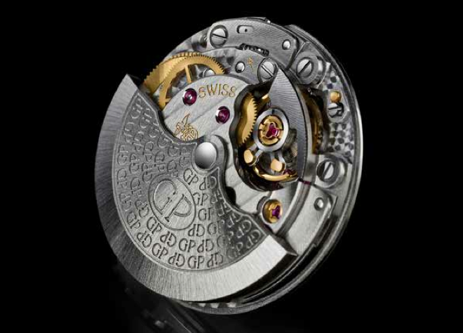 La caja está excepcionalmente curvada, lo que requiere un cristal de zafiro de cúpula convexa y que exhibe un juego de volúmenes regular y armonioso. Su minutería tipo ferrocarril y sus agujas Dauphine también se trabajan de manera individual prueba de la más alta calidad y valor relojero suizo, los acabados. Mientras que las horas, minutos y fechador cobran vida gracias al calibre mecánico de carga automática con rotor unidireccional sobre un rodamiento de bolas de cerámica para evitar la lubricación, el GP02700 también incluye una rueda de escape pilotaste entre dos chatones, mientras que el puente del volante ofrece mejores prestaciones y mayor fiabilidad en su precisión.