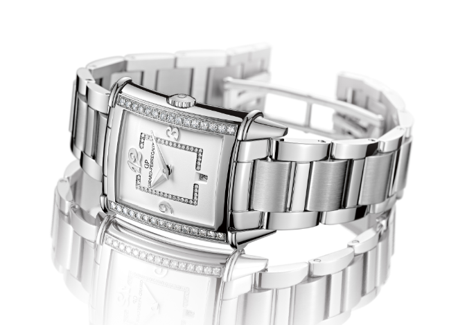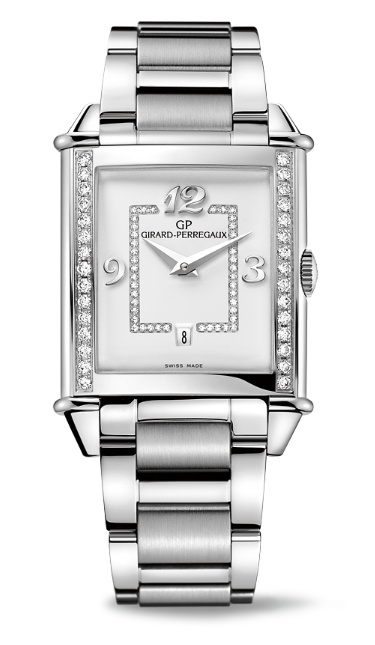 No solamente presume una gran historia, desde 1791, no solamente se inscribe en la cuna de la relojería suiza como lo es La Chaux -de- Fonds, no solo genera piezas de alta manufactura para caballero, sino que también lo hace para dama, se inspira en la corriente del Art-Déco y la baña de diamantes y números arábigos. Así es Girard-Perregaux, que presume un espíritu excepcional de creación estética y mecánica, de lo particular a lo general y de lo general a lo totalmente hermoso: Vintage 1945 Lady.
