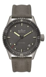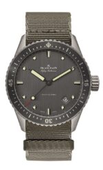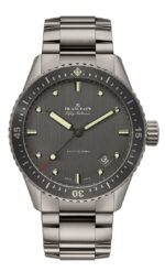 La novedad se encuentra disponible con una pulsera de tipo NATO, una de tela de vela en color antracita o un brazalete de titanio también de grado 23. Por primera vez en una pieza de la colección, el diseño es idéntico al de los brazaletes de los modelos Fifty Fathoms. Sin duda alguna, un digno heredero de una de las familias de relojes deportivas más exitosas en la historia.