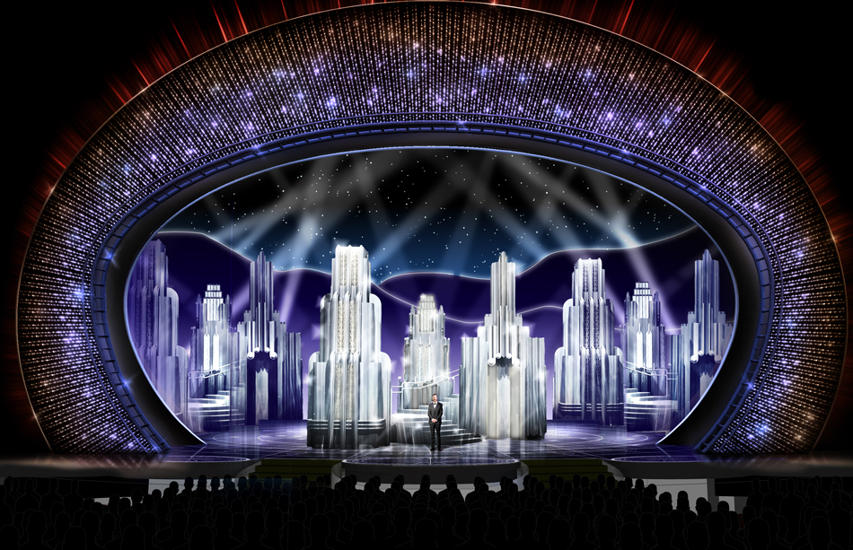 Para este año Derek McLane diseñó por quinto año el escenario, con 11 decoraciones individuales que trabajaron en conjunto, destacando el presidio, la cortina estática, una más que cierra y el diseño que cubría otros sitios de la sala de ópera.