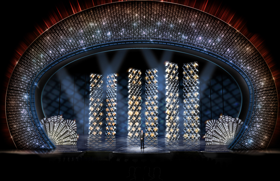 Celebra 10 años de colaboración con la ceremonia, desarrollando un espectacular escenario lleno de cristales y brillo. Históricamente los números hablan por sí solos: 1.2 millones de cristales con un peso de 10 toneladas, 580 horas de trabajo con 9 artesanos enfocados al desarrollo. Han sido 5 los productores de producción que han trabajado con la marca. El incremento de cristales utilizados desde 2007 a 2017 ha sido de 250 mil cristales, lo que forma un puente artístico entre Austria, sede de Swarovski y Hollywood.