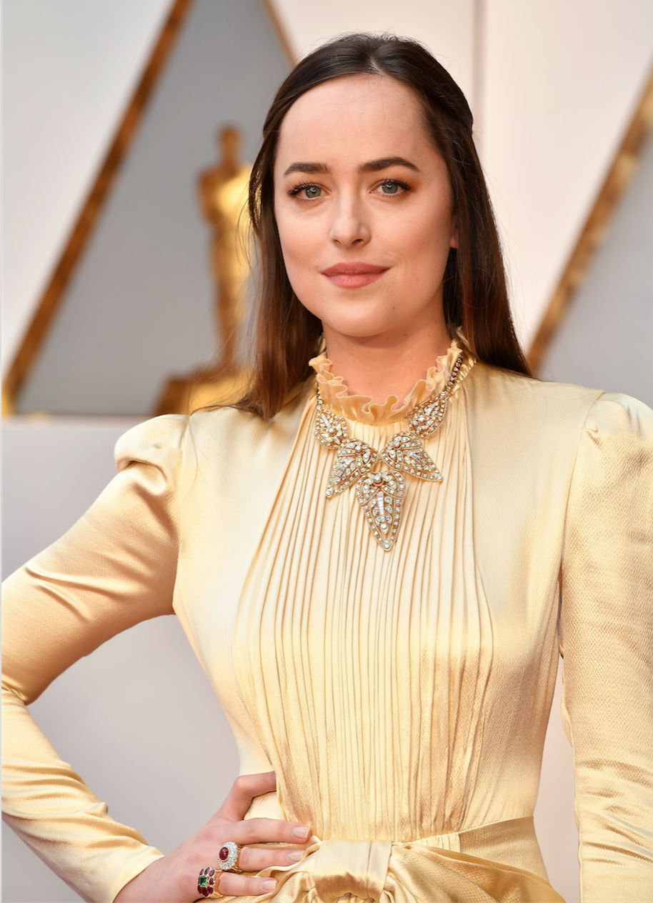 Entre las celebridades que asistieron a la ceremonia, se destacó la presencia de Dakota Johnson quien lució un collar Cartier vintage, 1958 de oro amarillo y diamantes, un anillo de oro amarillo, platino, rubí y diamantes y otro de oro amarillo con esmeraldas y rubíes.