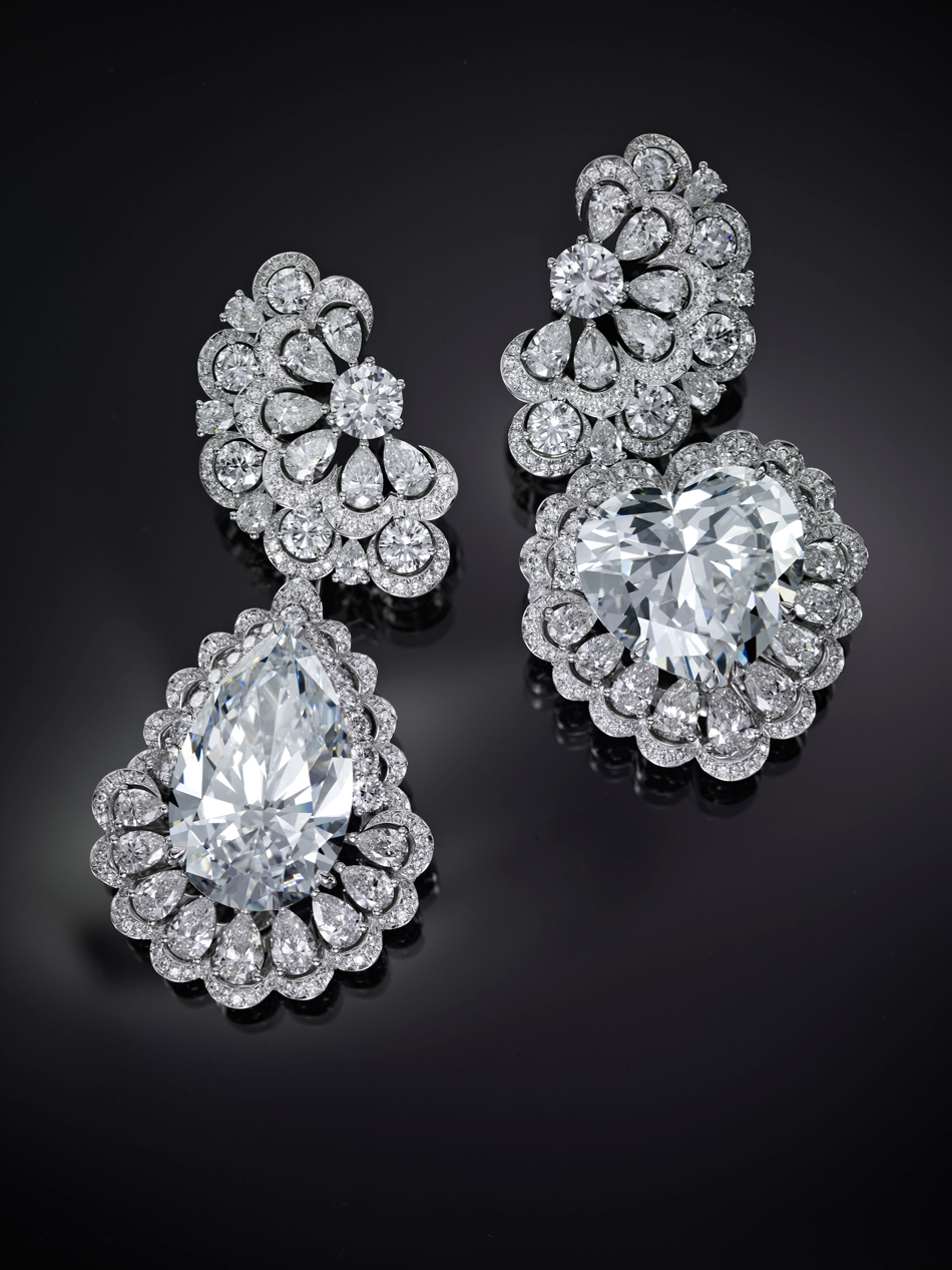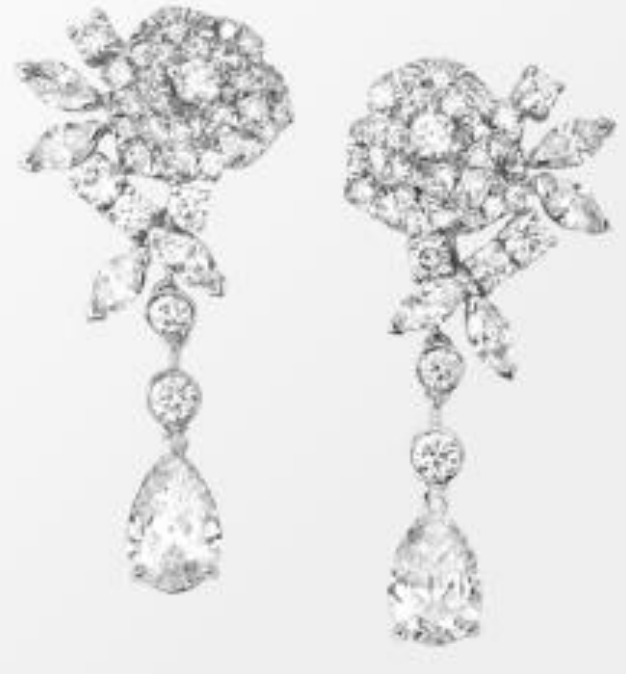 Charlize Theron seleccionó un par de aretes con diamantes, uno central en forma de pera de 25 quilates y uno más de 26 quilates en forma de corazón. Además el impresionante juego de pendientes luce 4,55 quilates de diamantes en forma de pera y 4,35 quilates de diamantes de corte brillante en blanco de 18 quilates Oro “Fairmined” del “Jardín de la Colección Kalahari”, un anillo con un diamante de 7,11 quilates en forma de pera y un diamante de 1,14 quilates en oro blanco de 18kt, ambos de la “High Jewelry Collection”.
