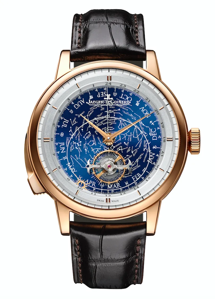 Mejor conocido como “el espejo del cielo en toda su plenitud”, esta pieza conformada de un tourbillon volante y un calendario perpetuo representa los movimientos astrales, la rotación de la Tierra en torno al Sol, las fases lunares y los decanos del zodiaco. Además, este modelo se caracteriza por el enamoramiento que genera el tourbillon a través de su jaula hecha en titanio que a su vez alberga un volante de oro y la espiral cilíndrica elaborados por Jaeger-LeCoultre.