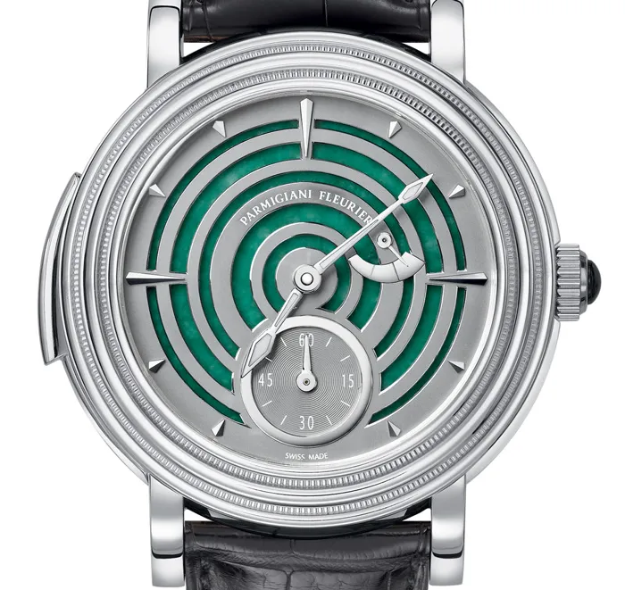 Bajo los sutiles matices del jade verde, el Toric Quaestor Labyrinthe incorpora una repetición de minutos cuya melodía es de una pureza muy poco común, obtenida gracias a diversas particularidades de su diseño.