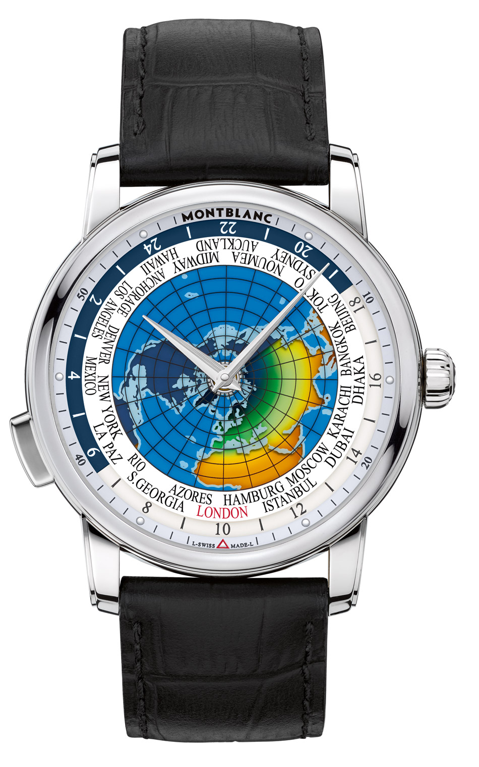 Estéticamente la pieza se presenta en una caja –de 43 mm– de acero inoxidable, al interior late el calibre MB 29.20 de remonte automático con 42 horas de autonomía a 4 Hz, visible en el reverso de la pieza gracias a una apertura de cristal de zafiro. La carátula está hecha de cristal zafiro, pero muestra cualquiera de los dos hemisferios y las 24 zonas horarias coincidentes. Se abraza a la muñeca gracias a una correa de piel de caimán color negro, y a su triple cierre desplegable.