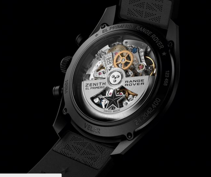 Range Rover Velar es el nombre del nuevo SUV inglés, pero en materia de relojes Zenith ha rendido tributo a partir de un cronógrafo con caja de 42 mm de diámetro construido en acero, el cual luce una carátula detallada con tonalidades cobrizas y una correa de caucho perforado con “alma” de piel de becerro.