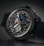 Su apariencia física se ve ampliada a 45 mm de diámetro, mientras la hermosa caja de fibra de carbón color negro y su efecto “damero”, nos trasladan al mundo de las competencias deportivas. Las asas caladas subrayan un perfil sumamente aerodinámico, mientras la correa de fibra sintética Nomex® no podría ofrecer mejor nivel de confort y seguridad.