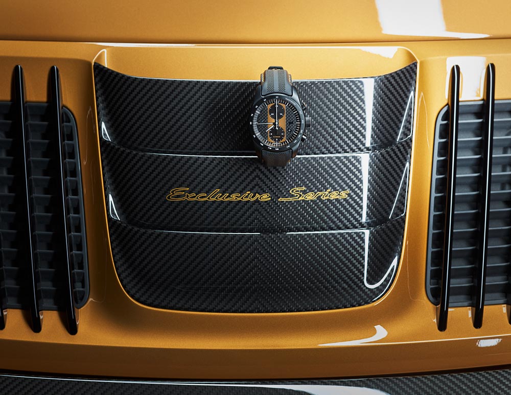 Al igual que los vehículos de la serie 911 Turbo S Exclusive, el reloj de titanio y fibra de carbón destaca por una correa de cuero, no obstante el propietario puede buscar personalizarlo de acuerdo a su gusto. La serie exclusiva se puede pedir a partir del 8 de junio de 2017 en un número limitado de 500 unidades en todo el mundo. El cronógrafo y el vehículo son hechos a medida y serán entregados personalmente.
