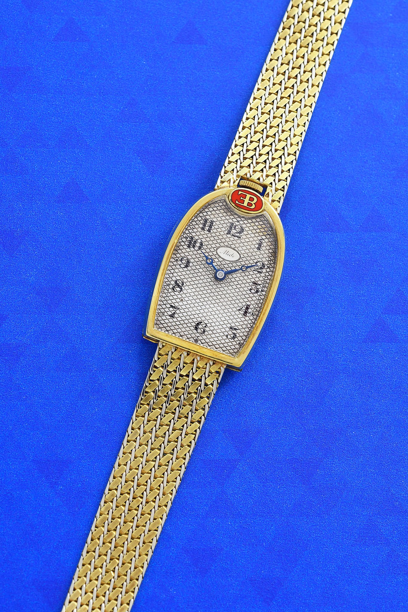 El reloj Mido de Ettore Bugatti fue subastado este 16 de abril por www.stanislasmachoir.com. La pieza formó parte de la colección de Le Patron, quien encargó varios relojes Mido durante su vida, algunos de los cuales entregó como obsequios a los pilotos de Bugatti a principios del siglo XX. Sin embargo éste, en particular, fue utilizado por el propio fundador de la Casa alsaciana de origen italiano, prueba de lo anterior el brazalete de oro amarillo propio de su solicitud personal.