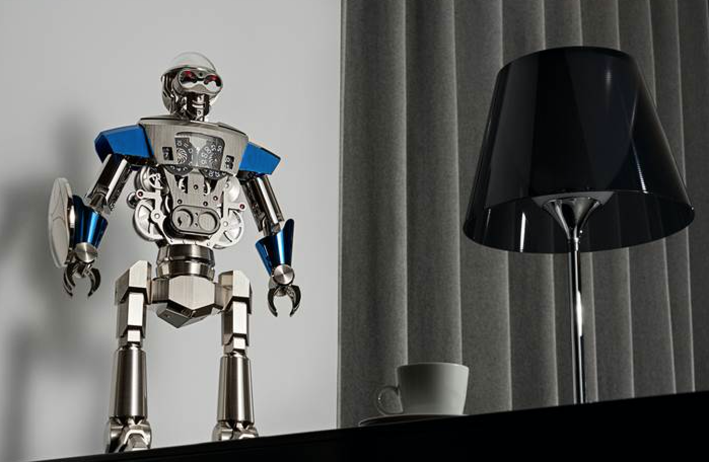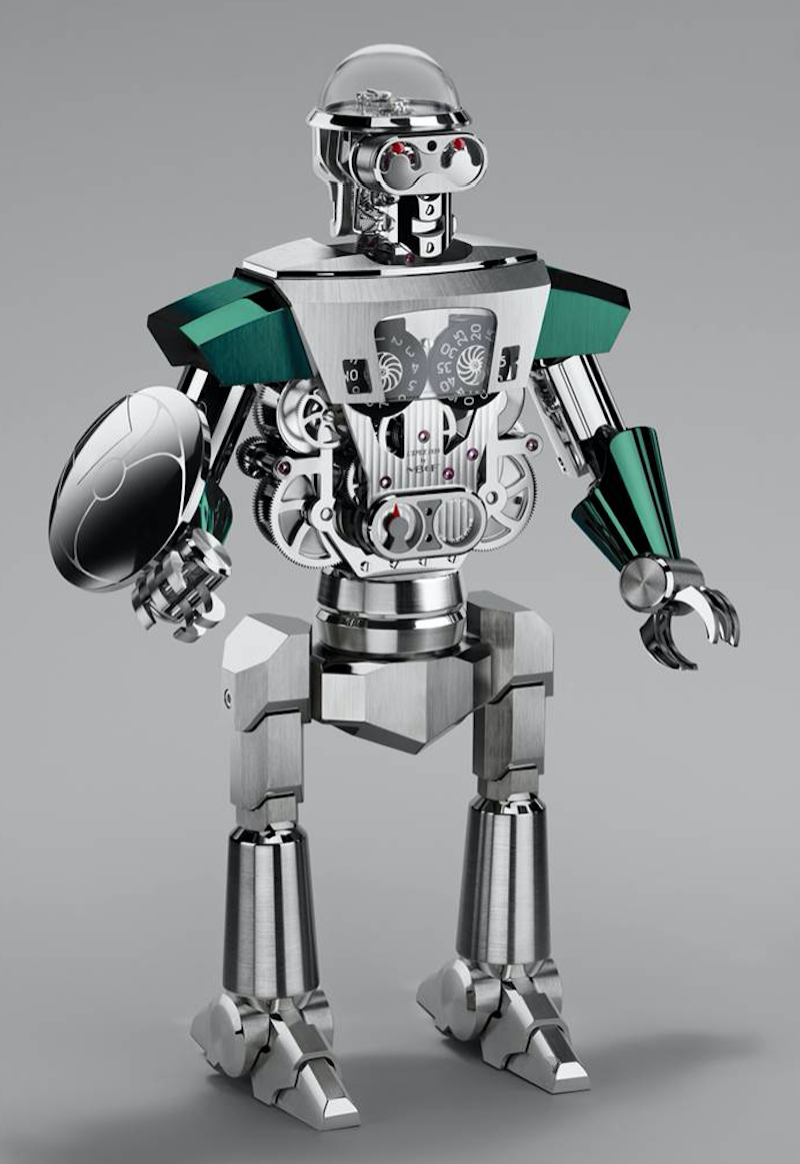 En una edición limitada a 50 ejemplares en color negro, plata, azul y verde, este robot-reloj estará disponible en Berger Joyeros.