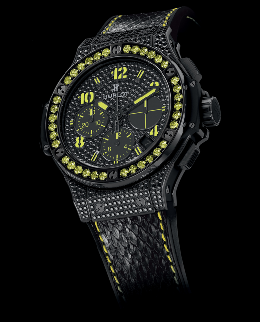 Este Big Bang supervitaminado se presenta en cuatro versiones distintas (azul, amarilla, rosa y verde), limitada cada una a 250 ejemplares numerados, el Big Bang Black Fluo de 41 mm de diámetro juega con los contrastes intensos entre el negro y los colores chillones.