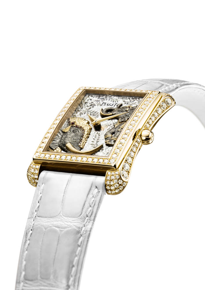 El Mythical Journey by Piaget está compuesto por 32 modelos de relojes que utilizan las más variadas técnicas artesanales como el micromosaico, bordado, grabado, esmalte, entre otras, y por 16 piezas de joyería creadas a partir de piedras excepcionales, incluyendo esferas de esmeraldas y zafiros, zafiros y esmeraldas facetadas y zafiros rosas engastados en oro rosa.