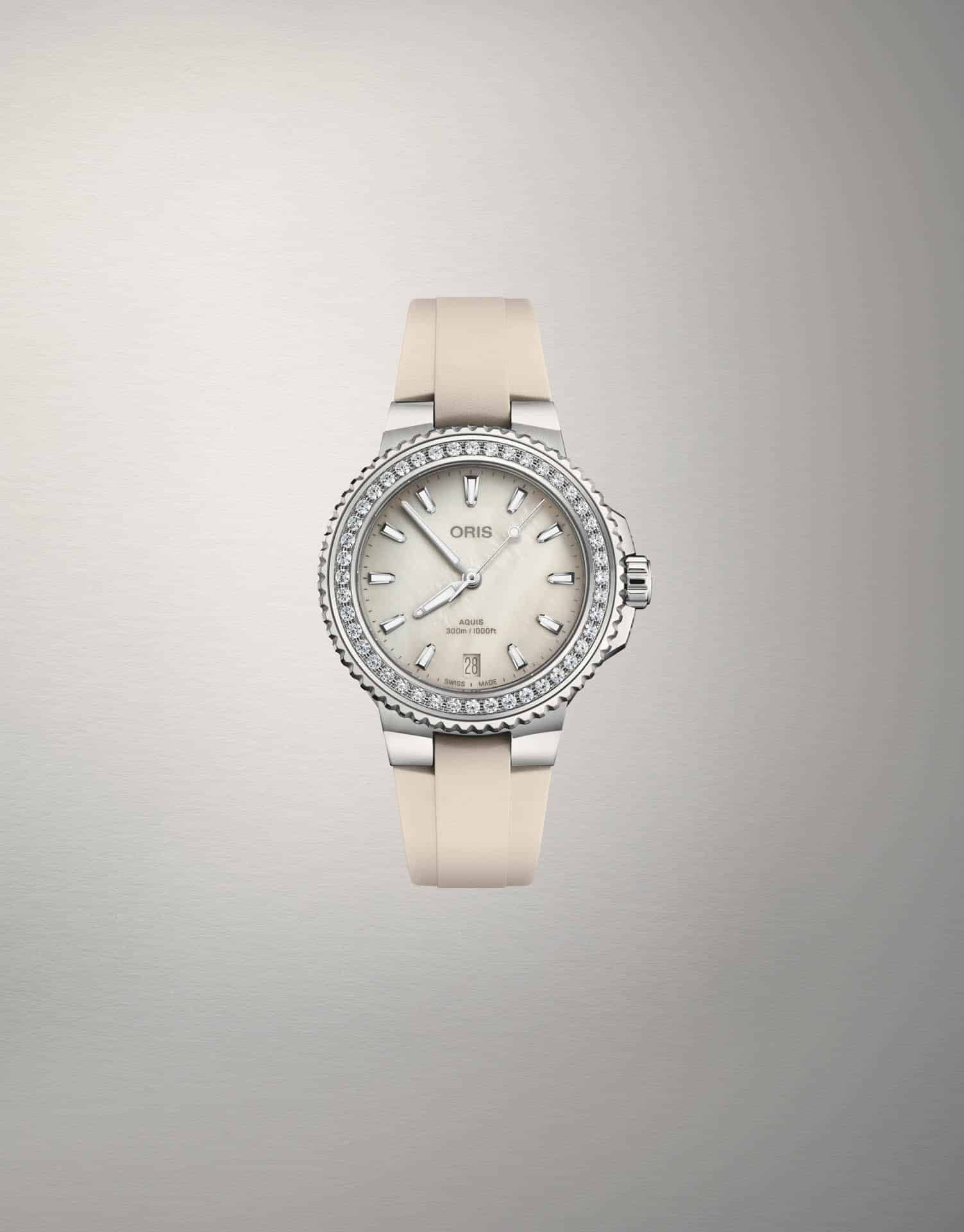 Oris presenta el nuevo Aquis Date Diamonds de 36.50 mm, un reloj que incorpora un deslumbrante toque de glamour con diamantes cultivados en laboratorio.