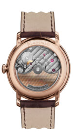 La complicación de la pieza reside en reflejar la luz gracias a su esmalte Gran Fuego, que revela los destellos de la luz y el logotipo “JB”, rindiendo homenaje a Jehan-Jacques Blancpain, que aparece entre los números: IV, V,VII y VIII, lo que indica una herencia de cómo firmaban –anteriormente– los esmaltadores sus carátulas.