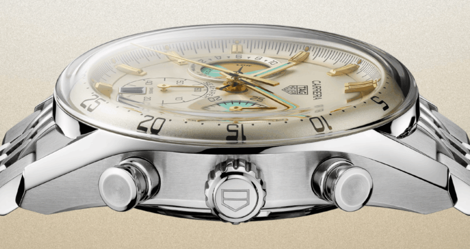 Su forma de llevar también alude a la elegancia atemporal y versátil de TAG Heuer. Por un lado, está el brazalete con siete filas de eslabones de acero inoxidable, un guiño al tradicional “beads of rice” de las versiones anteriores del Carrera; también se incluye una correa beige con forro en Intrepid Teal. Ambos rematan con un cierre desplegable de acero con botón de seguridad.