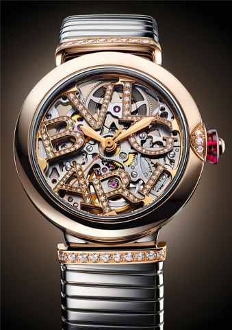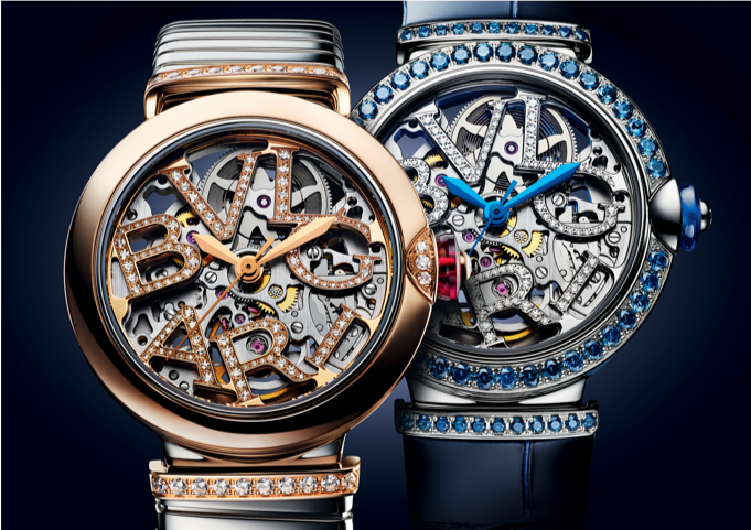 Los dos relojes de esta línea tienen una carátula esqueletada, en la que podemos apreciar, alrededor de toda la pieza una letra incrustada con diamantes que forma la palabra Bvlgari. Dándole un estilo único, haciendo de este reloj en una bella pieza de joyería. La Maison tiene dos diseños y colores que se adaptan perfectamente a diferentes estilos.