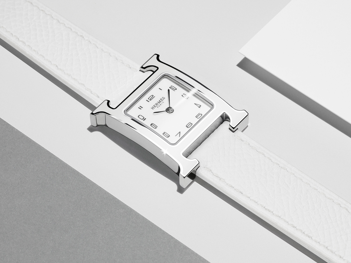 Su concepto y atractivo: el de atrapar el tiempo en una letra, la “H”, inicial de Hermès en mayúscula. La misma que se viste de laca blanca o negra de acuerdo a la configuración de su selección, y que destaca por el trabajo de pelleteria de la Maison, el cual es sinónimo de excelencia en la marroquinería internacional.