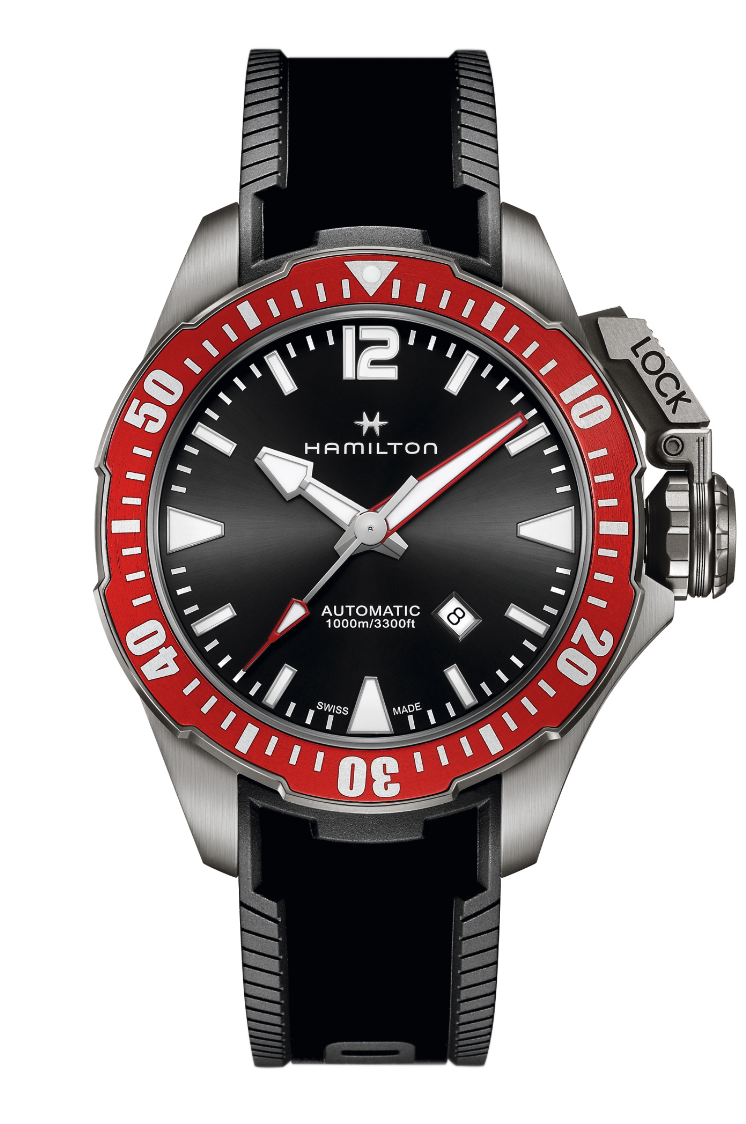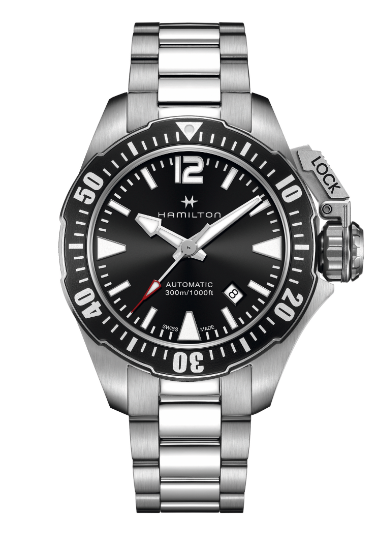 Esta icónica pieza sumergible fue originalmente creada para los equipos “Hombres Rana” de la marina de Estados Unidos. Ahora es más deportiva y robusta con un toque dinámico concebido a través de un motivo de buzo en el fondo y un calibre H-10 con reserva de marcha de 80 horas. Útil tanto en tierra firme como bajo el mar.
