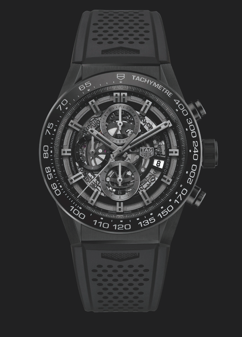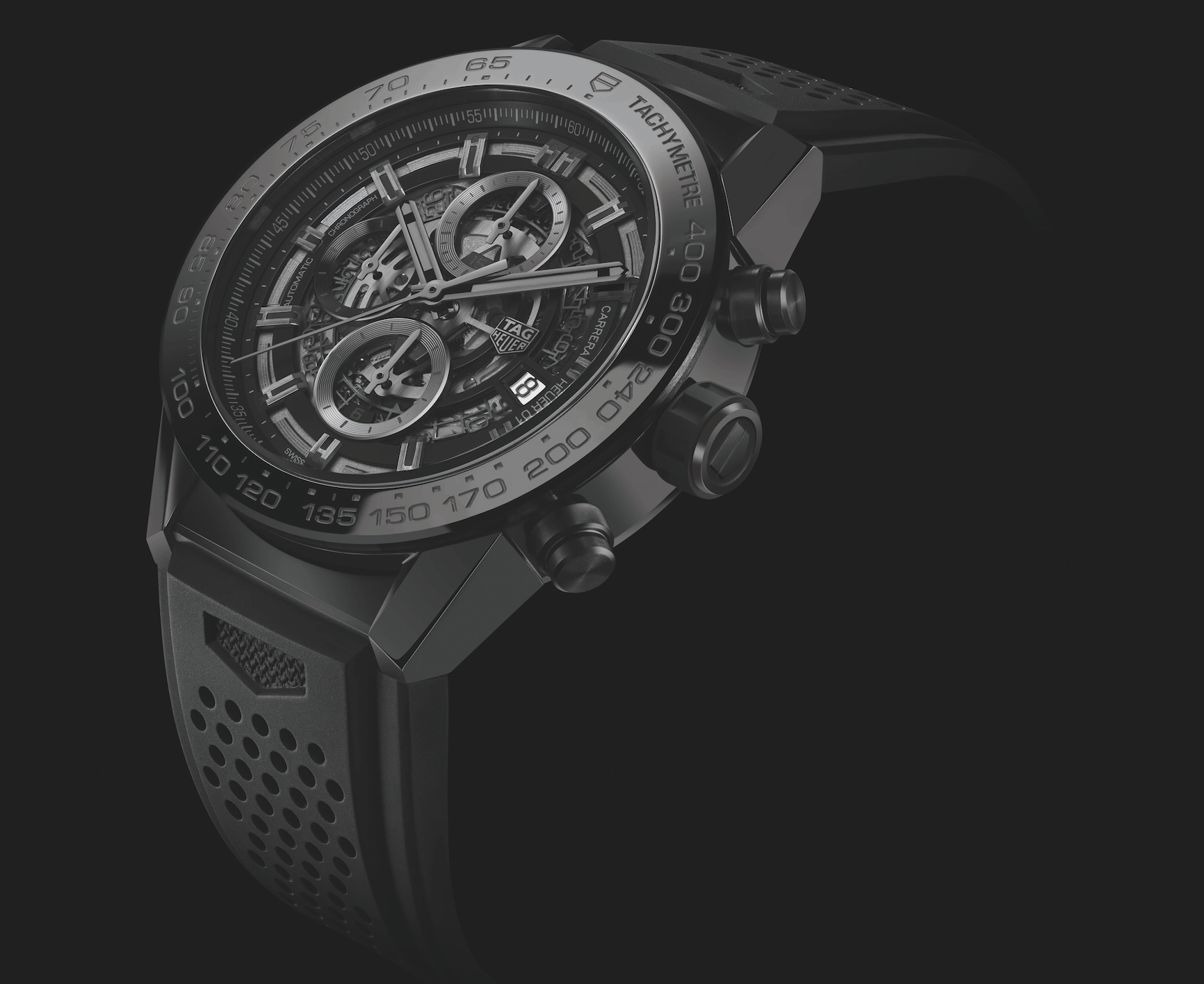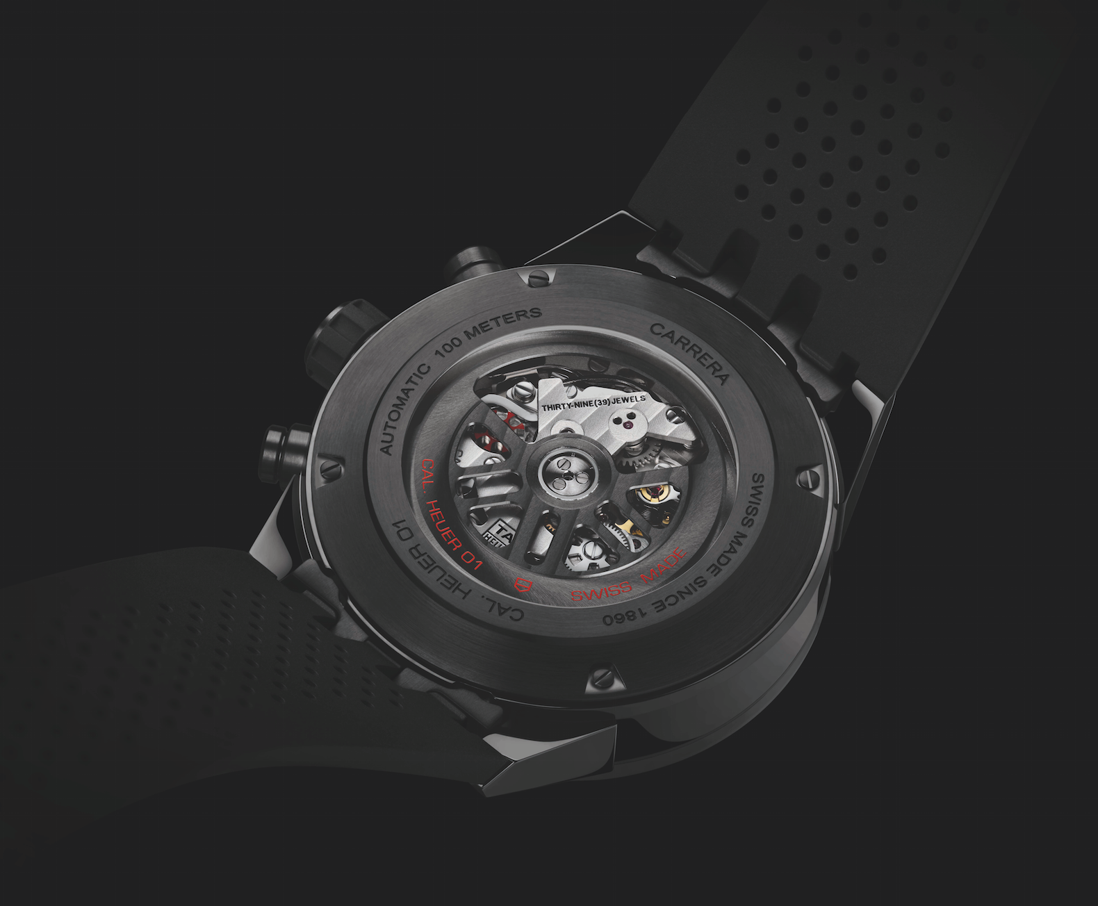 Un cronógrafo automático de Manufactura extremadamente llamativo para el comprador más audaz y estricto. El nuevo diseño del Carrera Heuer 01, revela los controles del cronógrafo y disco de fecha abierto a un costado de la carátula. El fondo de la caja muestra el mecanismo de la rueda de pilares roja y el puente del cronógrafo esqueleto.