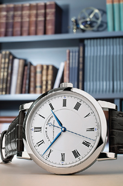 Por vez primera una caja de oro blanco -de 40.5 mm- alberga el calibre de manufactura L041.2 desarrollado específicamente para este modelo, y con la finalidad de lograr el más alto grado de seguridad mediante mecánica pura, es decir: incorpora un oscilador sin indicadores que late a 21,600 semi-oscilaciones por hora. Dicho sistema consiste de un volante con contrapesos excéntricos y una espiral, en el que ambos componentes -adaptados uno a otro- fueron desarrollados enteramente por la manufactura sajona.