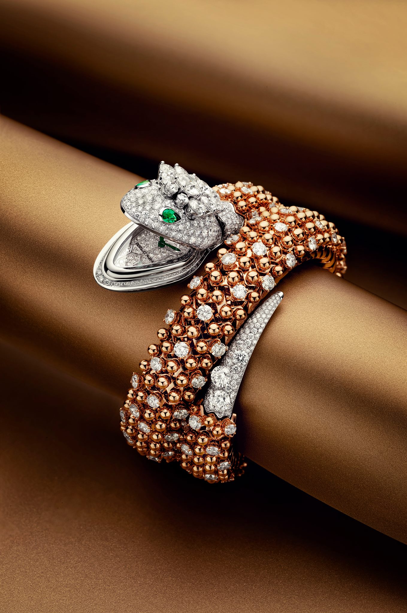 Jewellery: Antoine Preziuso Trillion Tourbillon of Tourbillons, Bvlgari Serpenti High Jewellery, Chanel Bouton de Camélia, de Grisogono Cascata, Piaget High Jewellery Cuff Watch Dentelle d´Or, Van Cleef & Arpels Secret de Coccinelle.