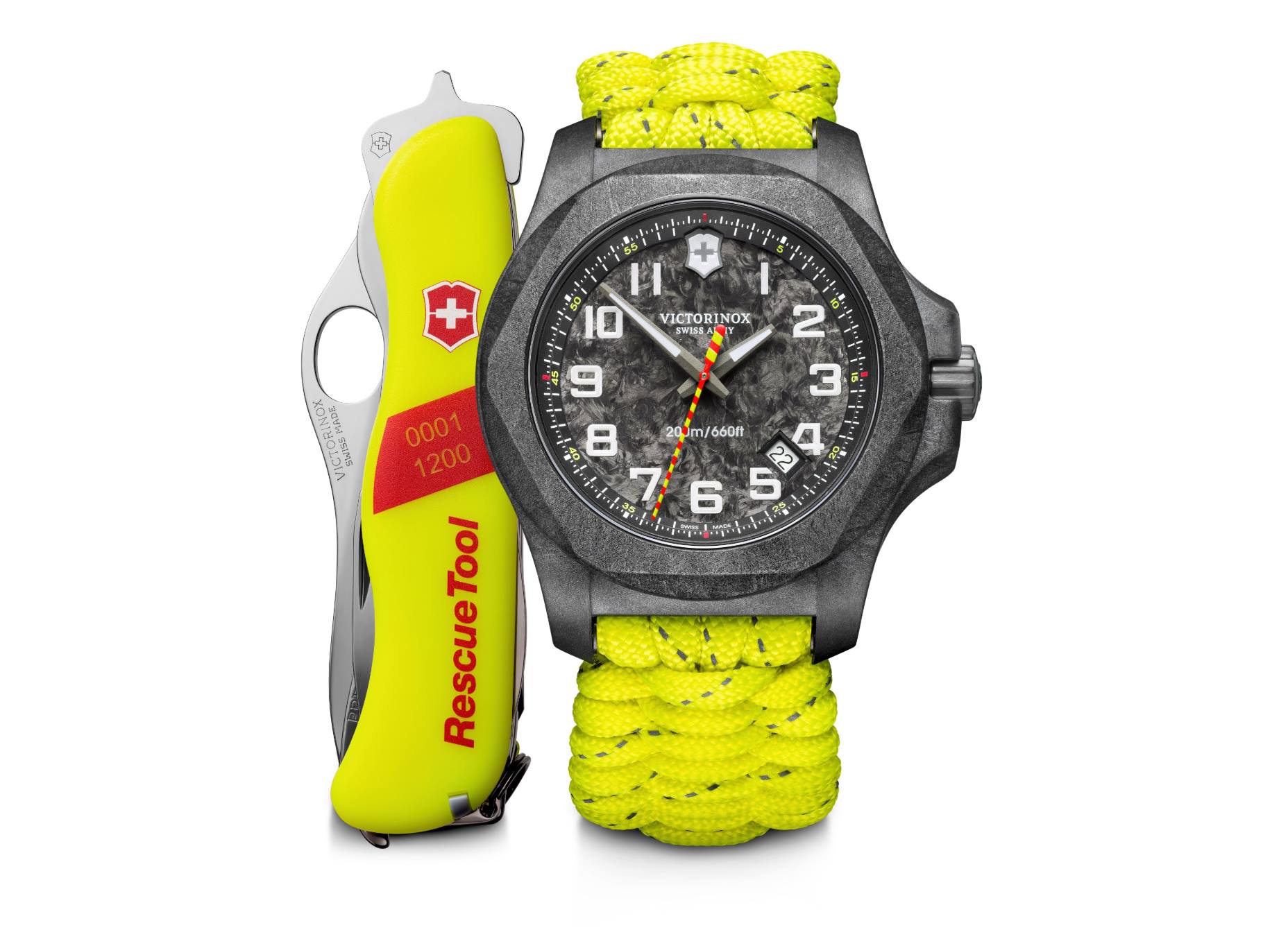 Adicionalmente, por su legitimidad y swissness inherente, puede entregar verdaderos estuches de regalo con gran valor, inspirados en valores coincidentes de resistencia y legitimidad. Este es el caso del I.N.O.X. Carbon de Edición Limitada a 1200 ejemplares, pues está enraizado en el mundo de los bomberos. Posee una Swiss Army Knife Rescue Tool, junto con otros artículos útiles.