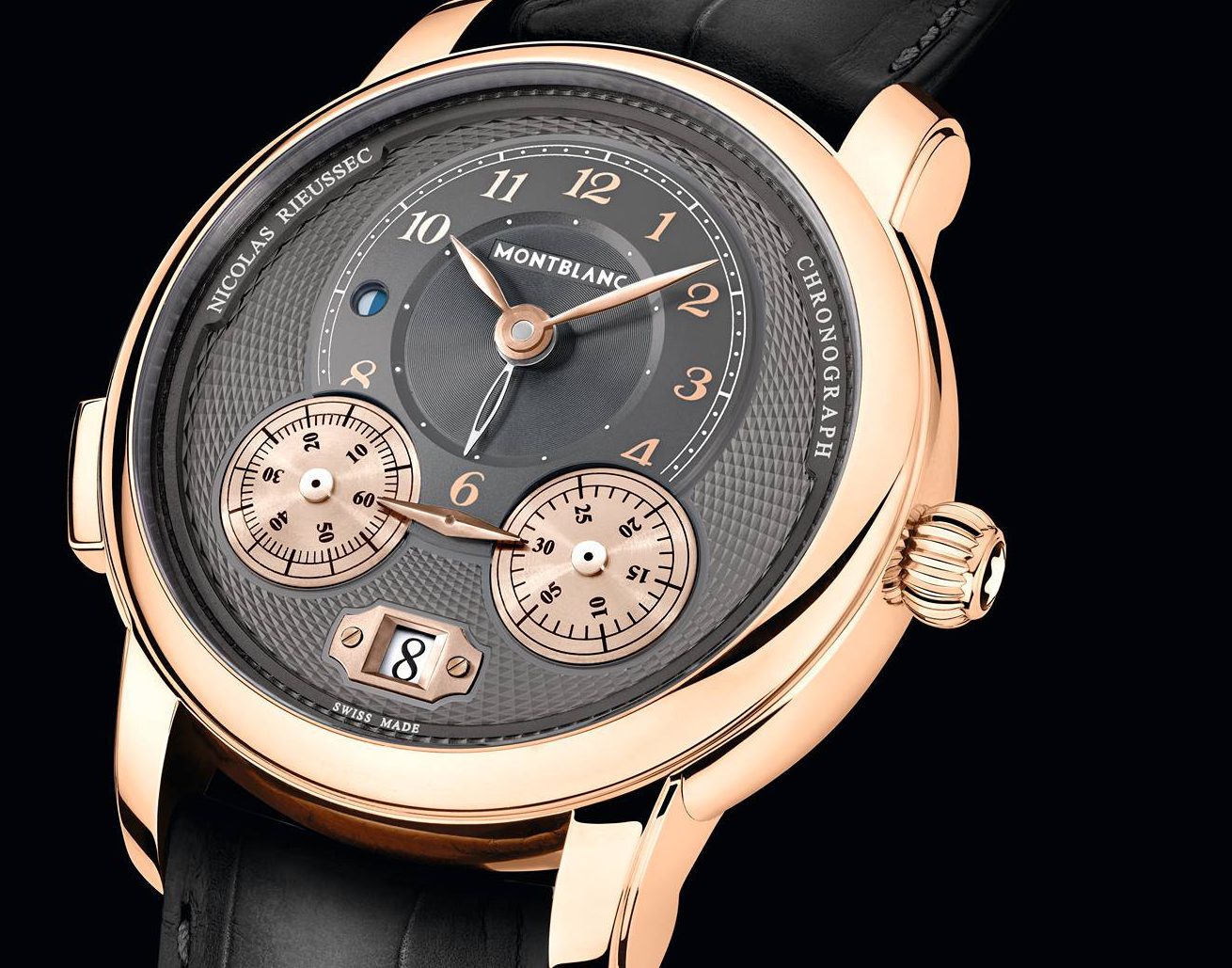 Tras el lanzamiento del cronógrafo Star Legacy Nicolas Rieussec en acero inoxidable con una carátula blanca plateada que fue desvelado en 2018, Montblanc presenta dos versiones nuevas: una es la combinación de una estética compuesta por oro rosa y antracita, mientras que la otra viene en acero inoxidable con una carátula en antracita. Ambas están equipadas con una correa de piel de caimán Sfumato antracita del mismo color fabricada en la Peletería de Montblanc en Florencia, Italia.