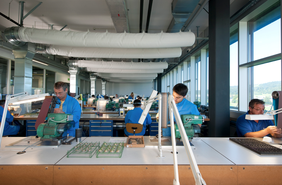 Una más de las fábricas de Patek Philippe, visitamos el edificio integral que toma en cuenta las normas ecológicas de la Minergie, que se conforma por: Calame & Cie SA, destinada a la construcción de cajas para reloj; Poli-Art SA, que se enfoca en el acabado y pulido de diferentes componentes horológicos, y SHG Sertissage Haut de Gamme, la cual está dirigida a labores de engastado utilizando las gemas más apreciadas de la relojería y alta joyería. Juntos realizan tareas que en muy pocas ocasiones tenemos en cuenta, pero que forman parte de la palabra manufactura en toda su extensión. De fábricas de Patek Philippe.